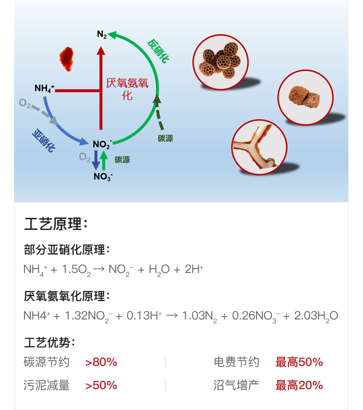 Flocculent and granule mixture sludge Anammox process 即絮状颗粒混合污泥厌氧氨氧化工艺,是低C/N比含氨废水生物脱氮处理的升级换代技术。