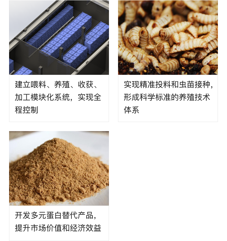 小昆昆生物科技(常州)有限公司作为维尔利集团在蛋白替代及生态循环业务领域的孵化版块,致力于为有机废弃物资源化提供以生物转化技术为核心的综合解决方案和应用服务。构建从“种子技术—标准养殖—产品开发—饲料定制—营销支持—生态循环”的全流程核心竞争力,形成产业技术壁垒,为饲料生产和水产养殖企业提供蛋白原料,为大型农场提供肥料定制化服务。主营业务包括:昆虫养殖及其产品、发酵饲料、菌体蛋白、生物有机肥料等的开发、生产、销售,生物技术领域技术开发、咨询、服务等。